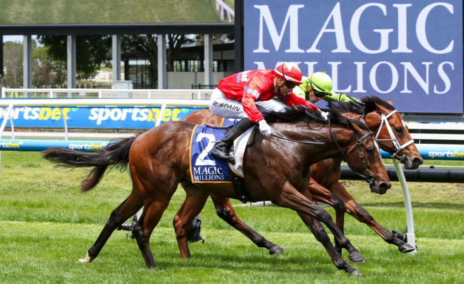 Going around at $41, the colt produced a powerful late surge under Zac Spain to nab Stretan Ruler ($16) in the final strides of the 1000m contest.