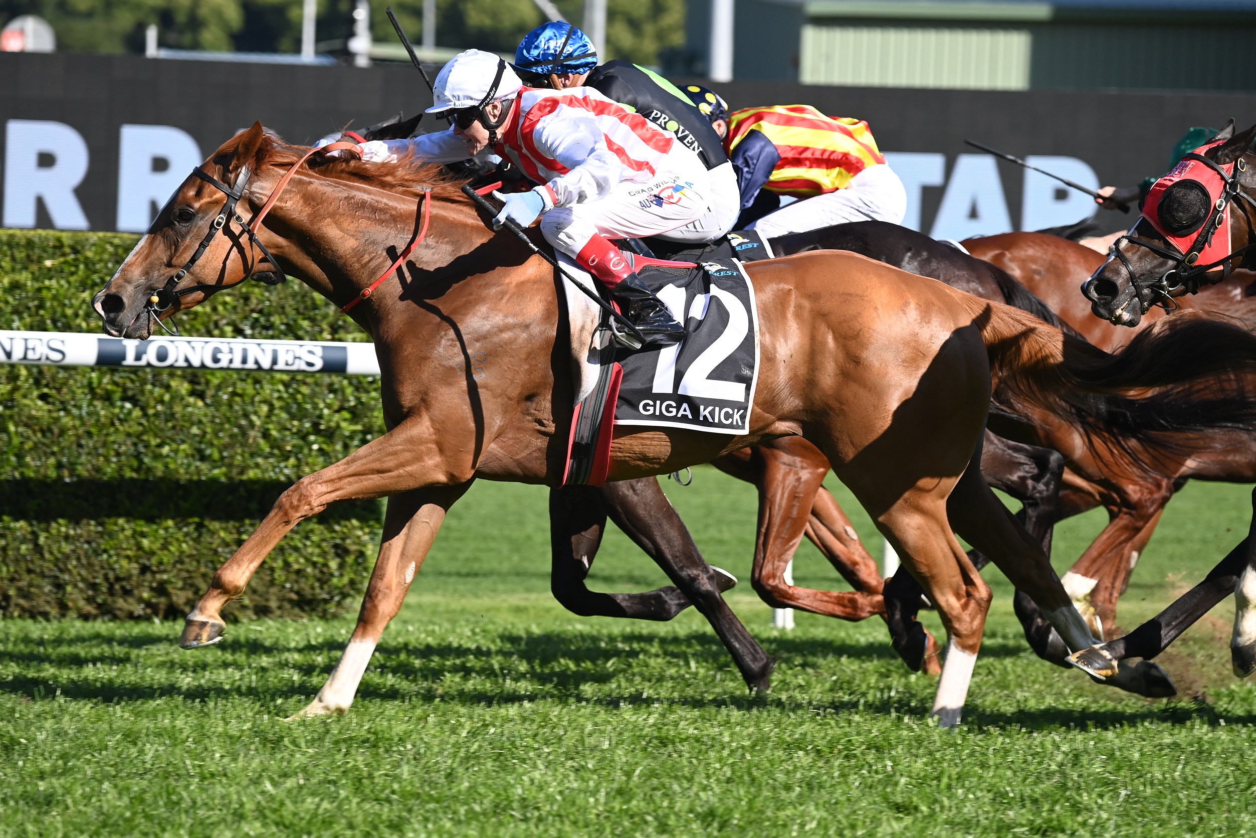Settling at the back of the field of five, Giga Kick found the line nicely between runners under regular jockey Craig Williams, just edging out a quarter of smart sprinters headed by Wee Nessy.