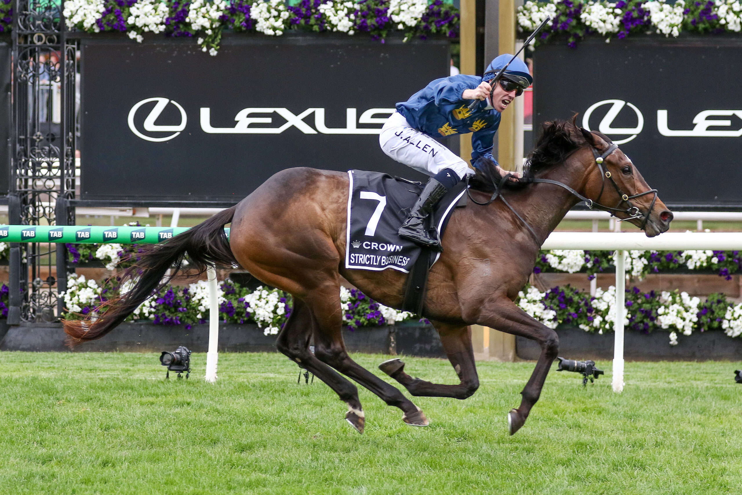Lightly raced filly Strictly Business delivered a fairy-tale result at Flemington on Thursday, storming home to win the Group 1 VRC Oaks (2500m) for Irish pair Thomas Carberry and John Allen.