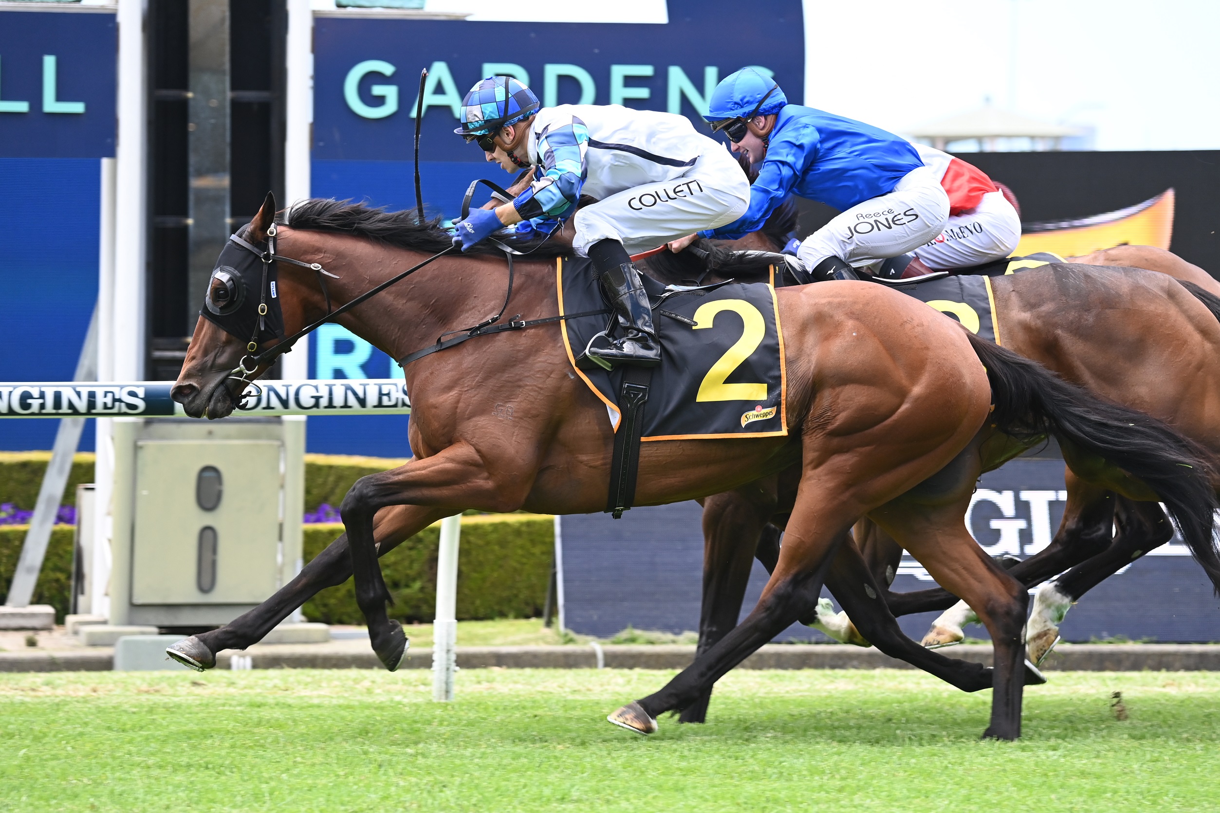 Collett rode a typically patient race aboard Secret Glamour ($5), biding his time at the back of the field after she was slow to jump before switching her to the outside in the straight and steaming home out wide to score.
