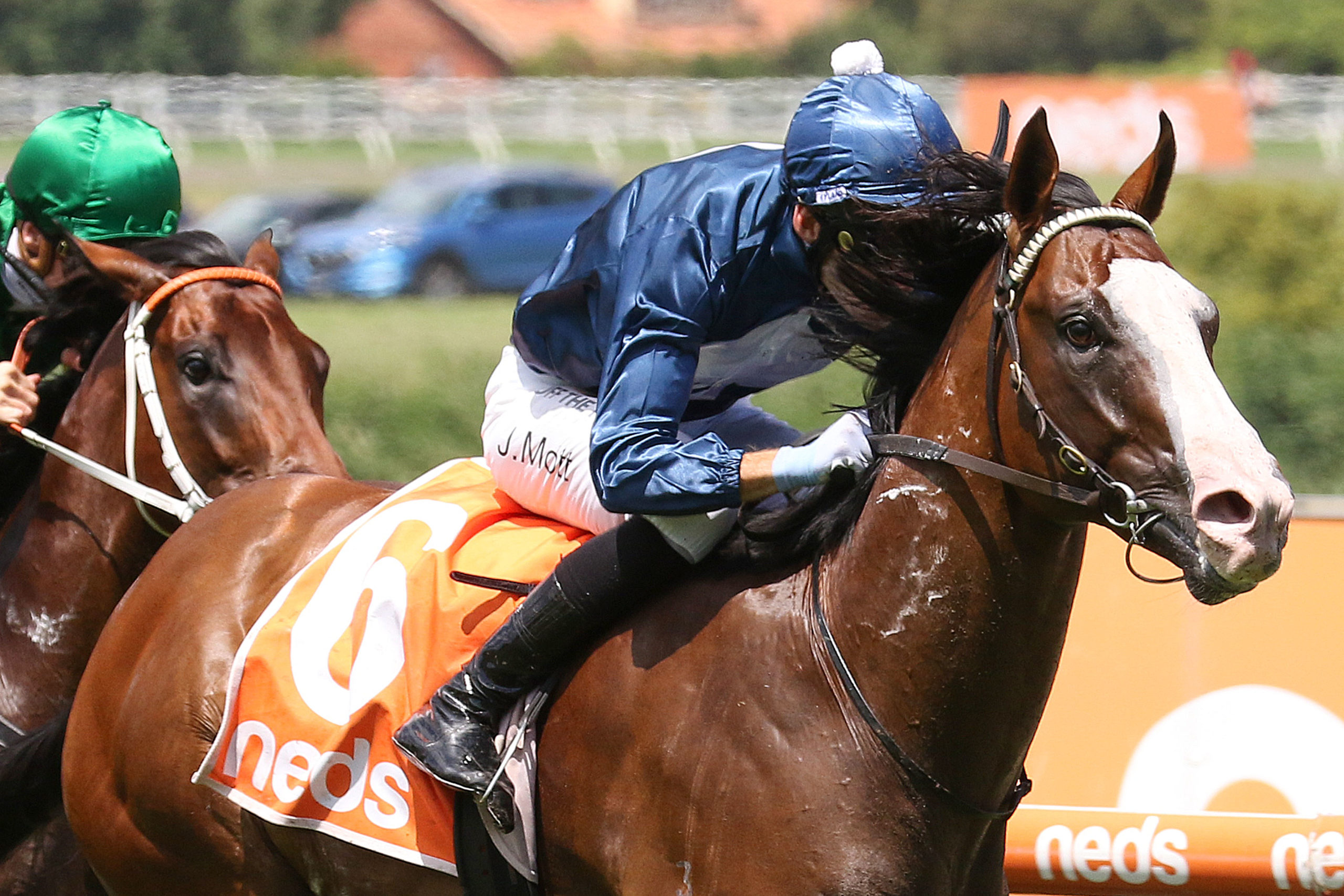 Lofty Strike, with Jamie Mott aboard, finished third behind Grand Impact, an opponent on Saturday, in the Group 3 Blue Sapphire Stakes (1200m) at Caulfield at his third race start.