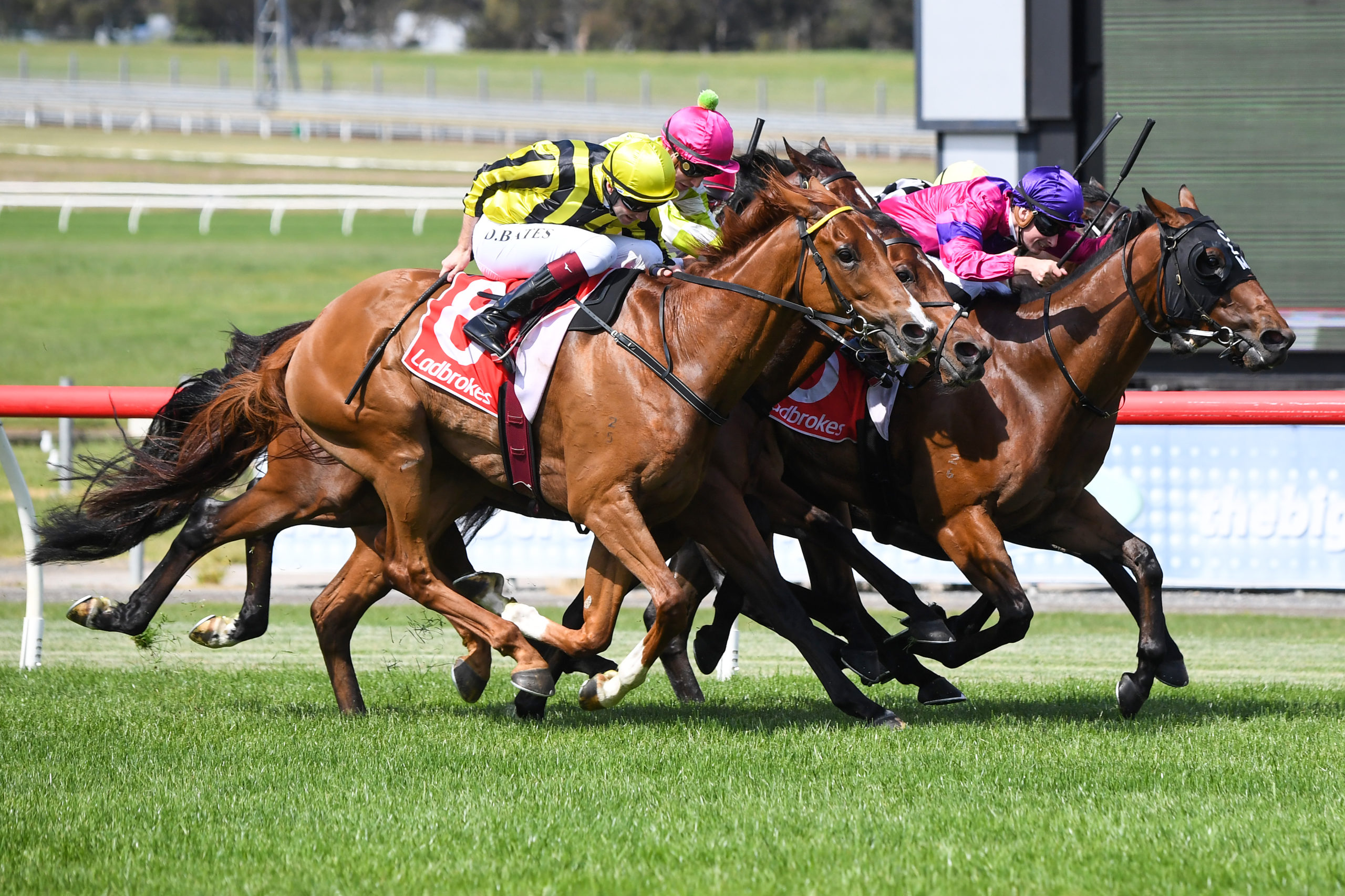 Under the guidance of Declan Bates, Convict Sam ($7.50) scored in a blanket finish by a head from Galactic Express ($10) with the $4.20 favourite Translator a short-half-head away third.