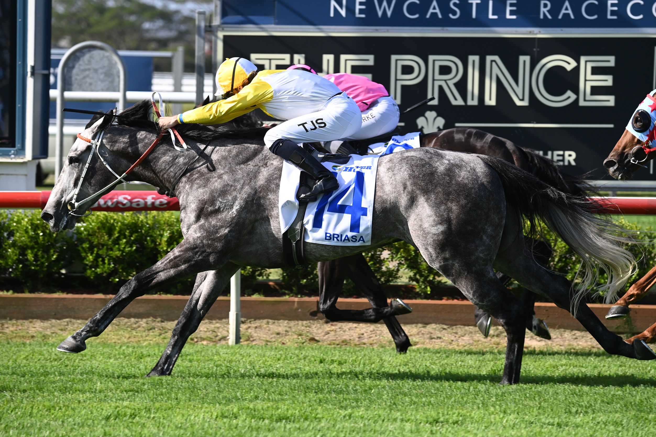 Hawkes Racing sprinter Briasa has underlined his considerable promise by posting his first stakes victory in the $1 million The Hunter at Newcastle despite enduring a wide run.