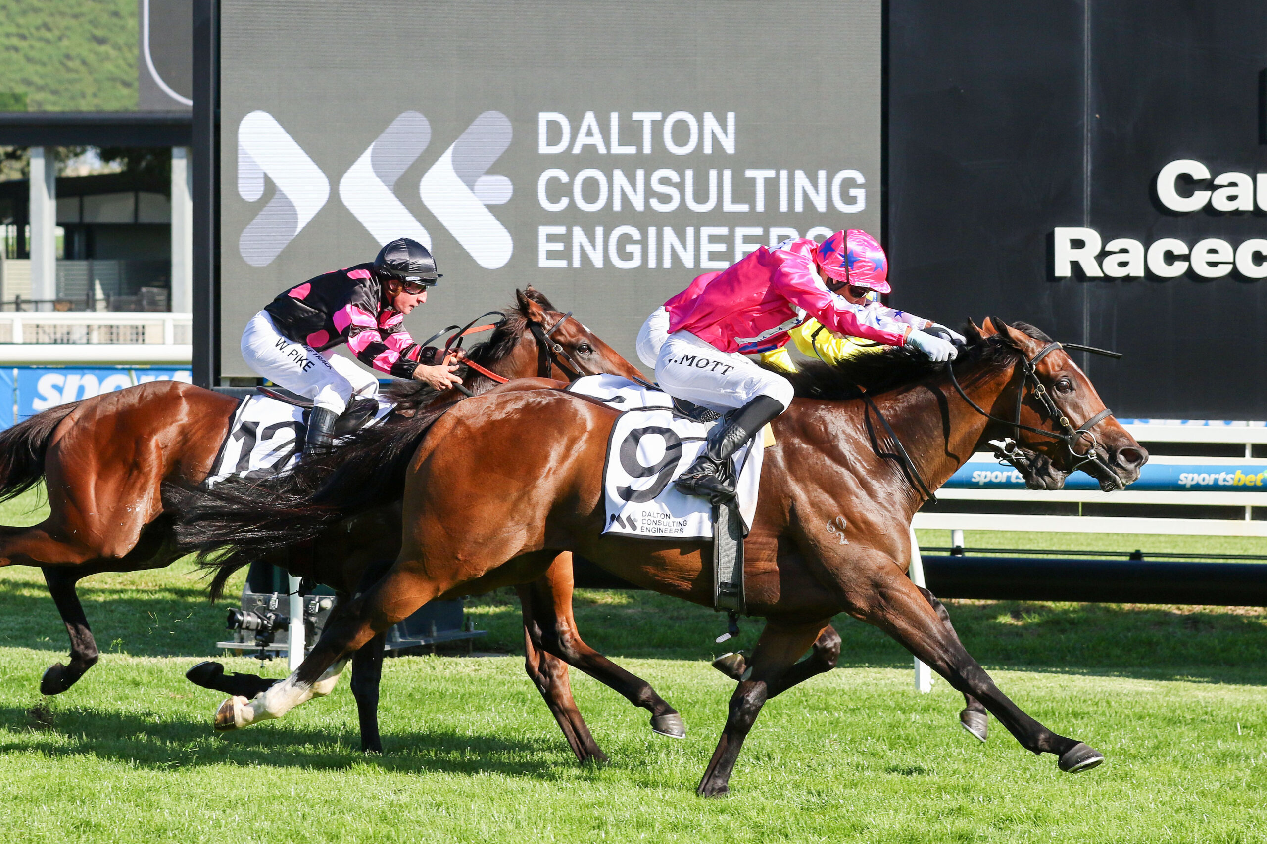 Jamie Mott guided the $5.50 Roulette King with a devastating late charge to deny $81 outsider Savisanta by a narrow head margin, Kaye Jay ($21) three-quarters back in third.