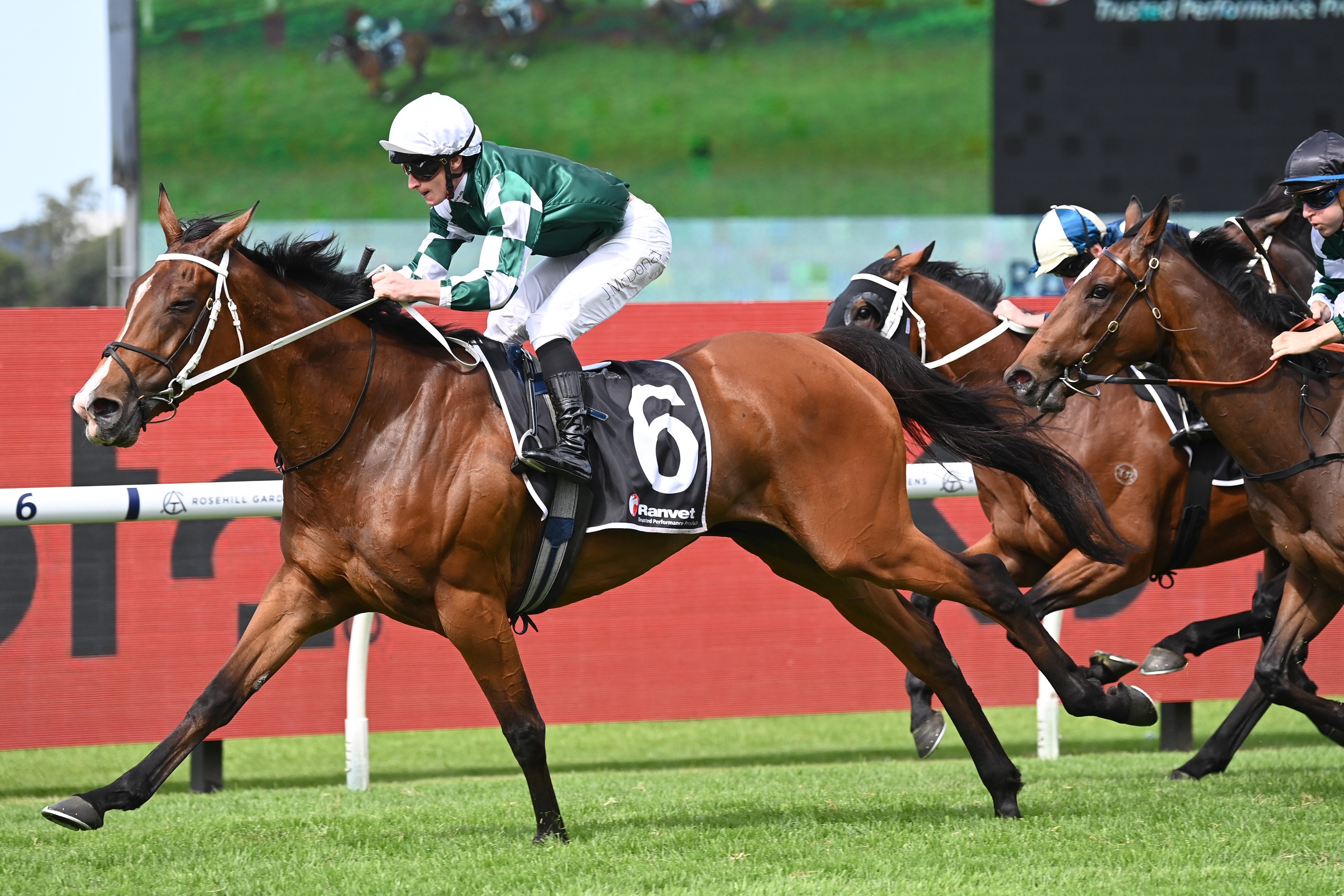 The $2.30 favourite swept down the outside and was running away at the finish, putting 1-1/4 lengths on fellow Yulong-owned import Place Du Carrousel ($6) with the winner’s barn mate Buckaroo (9) a further half-head away third.