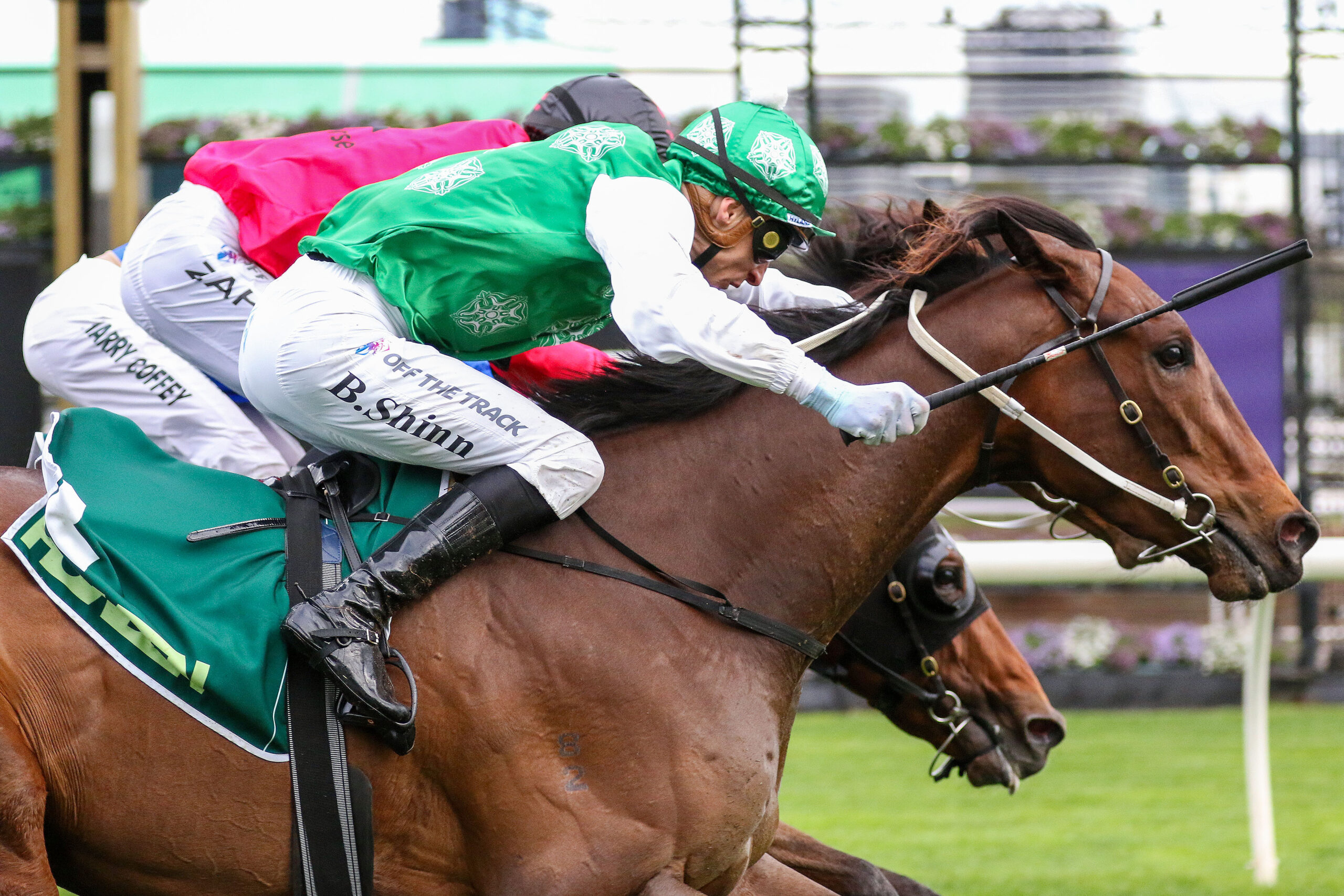Stepping up to 1800m proved the key for the son of The Autumn Sun, who had hinted at ability in shorter races last season. Ridden confidently by Blake Shinn, the $4.60 chance lunged late to edge Engine Of War ($6) by a short half head, with Options ($3.10) another narrow margin back in third.