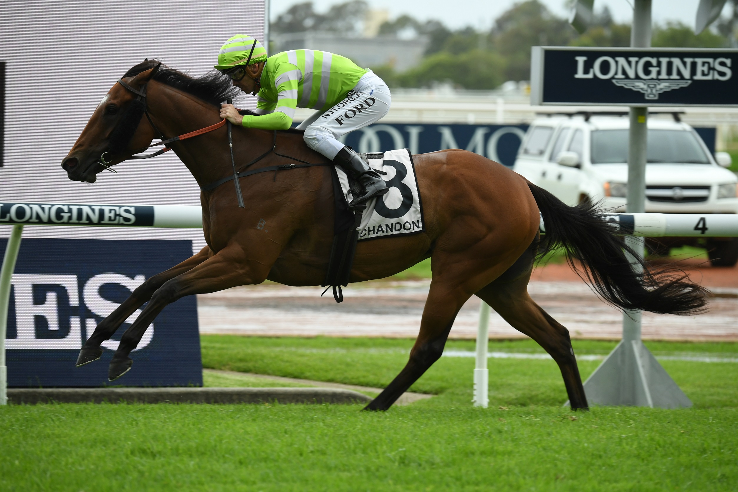 The wet track and addition of winkers were also key factors on Saturday, as was a well-executed front-running ride by Jay Ford.