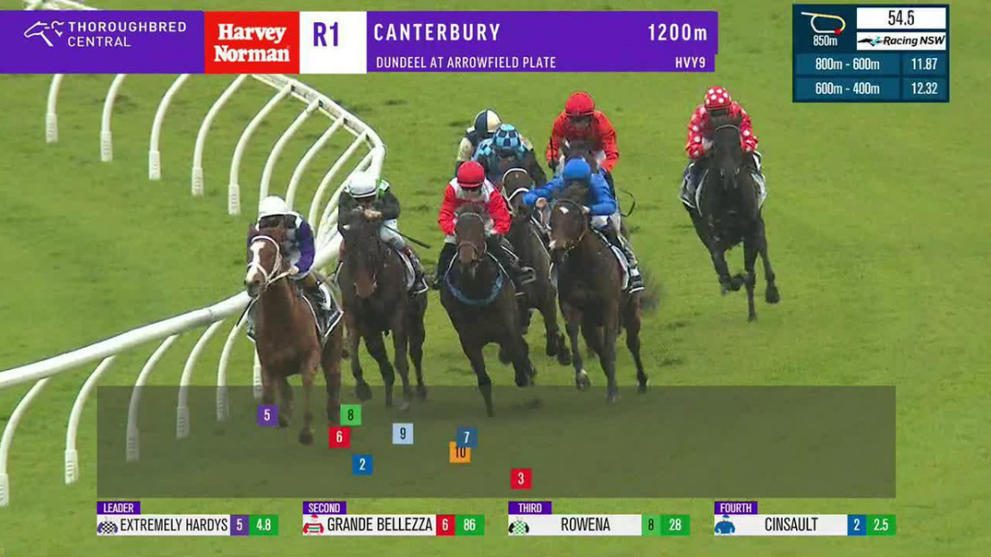 Extremely Hardys ($4.60) made a one-act affair of the Dundeel At Arrowfield Plate (1200m), gapping nearest rival Cinsault ($2.40 fav) by six lengths with Rowena ($26) third.