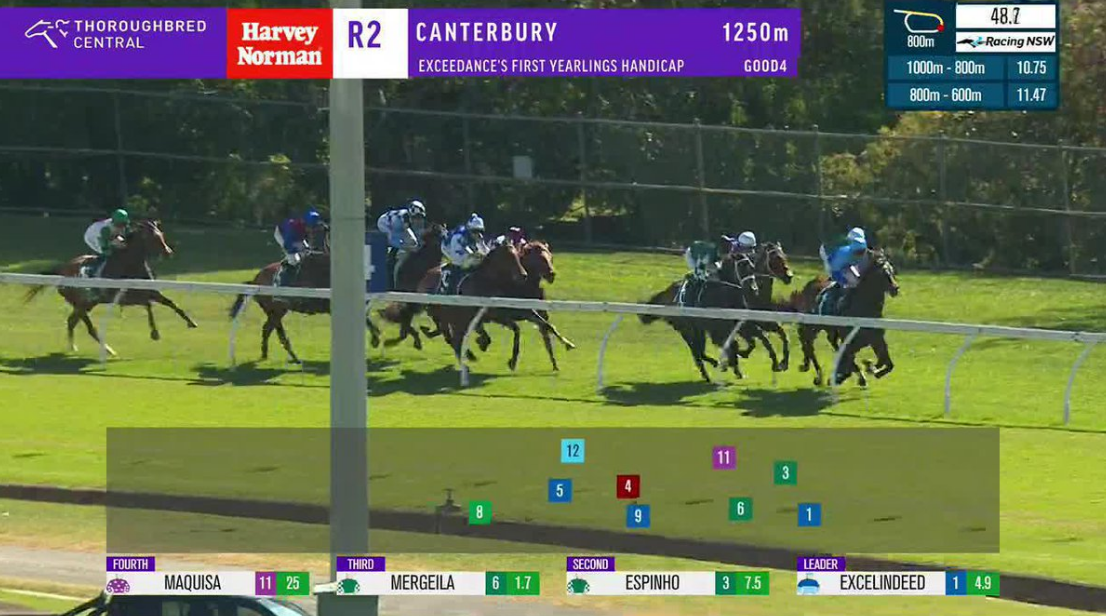 Partnered by James Mcdonald, Mergeila ($1.75 fav) camped behind the leader before shouldering her way into the clear to score by just over a length from the closing Indecisive ($13) with Espinho ($6.50) a similar margin away third.